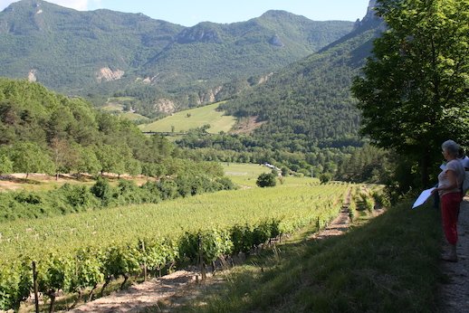 Chacun des quatre jeunes mène son activité viticole indépendamment, à Espenel ou à proximité. Pour s’entraider et mutualiser les coûts de matériel ils préparent la création d’une CUMA. Déjà formés et expérimentés dans le travail de la vigne, ils ont besoin pour conforter leur activité de parcelles supplémentaires. En juin les bénévoles instructeurs, font connaissance avec les propriétaires et visitent les vignes. Les parcelles sont toutes situées sur la commune d’Espenel. Rive droite de la Drôme, elles forment un ensemble continu, rive gauche elles sont dispersées autour du village. Les porteurs de projet imaginent comment les répartir pour compléter leurs propres exploitations.