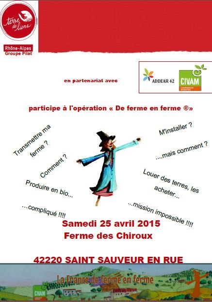 une rencontre ciné-débat autour de la transmission des fermes du Pilat et de l’installation en agriculture, à partir de 18 h 30 à la salle du Buis à Saint Sauveur en Rue (près de la mairie). Le film projeté « Les chèvres de ma mère » de Sophie Audier sera suivi d’un débat (entrée gratuite)