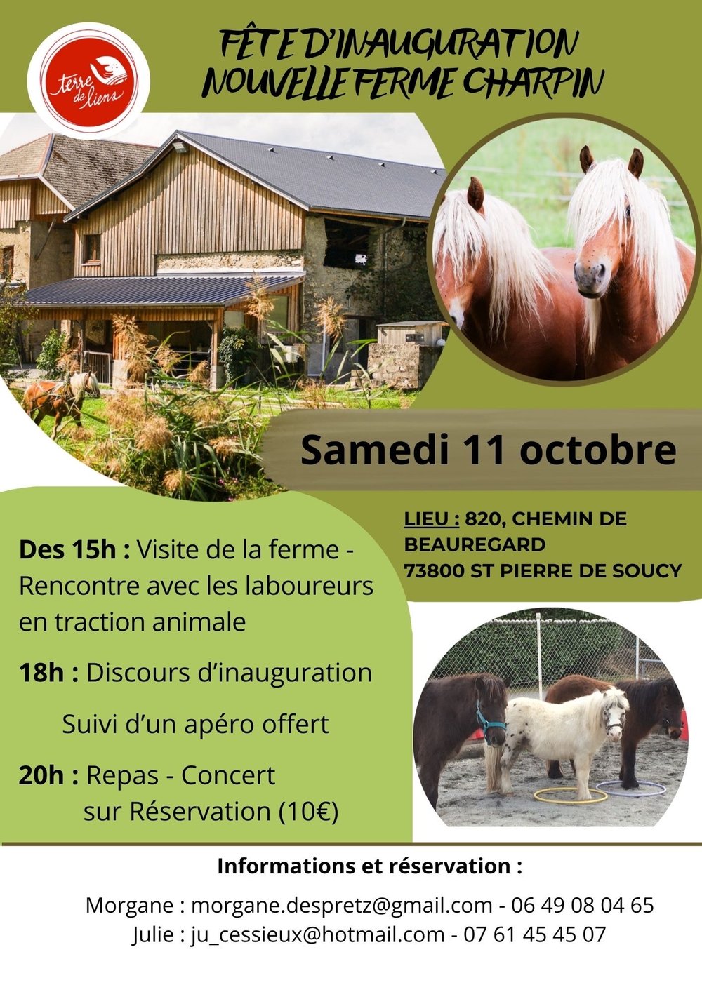 Le samedi 11 octobre 2025, la ferme Charpin et l’Association Terre de Liens Rhône-Alpes organisent une journée festive pour l’arrivée de nouvelles agricultrices et le lancement d’un nouveau projet agricole sur la ferme !